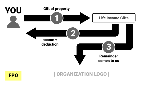 - You donate cash or appreciated securities worth $[INPUT MINIMUM GIFT AMOUNT] or more to [ORG]. In return, you and/or another beneficiary will receive fixed payments for life.